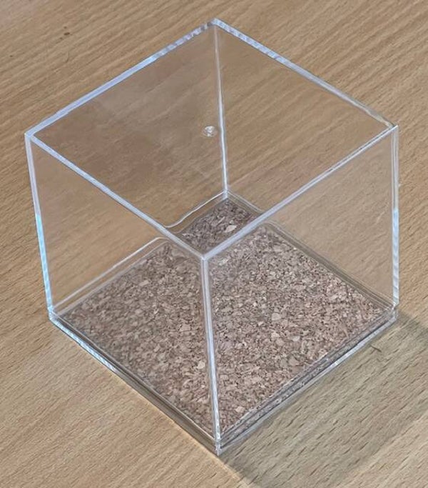 Acryl doosje met vastgehechte bodem of afneembare bodem - afmetingen 80 mm x 80 mm x 80 mm - geschikt voor display bal met zandkorrel- of parel ondergrond